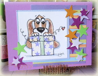 All of these cards are simple and fun doodles of Gus the Beagle/Basset hound. Today he is party bound with a present surrounded by popping stars and a cool party hat with a fluffy thing -a- ma- jig at the top! These cards can be given for any type of celebration or acknowledgement.